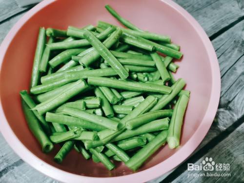 烧适量水,水煮沸腾后再把豆角放入锅焯水一分钟后捞出备用。