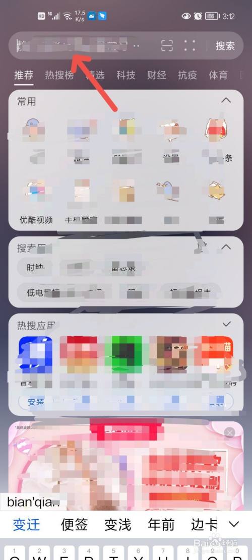 在弹出的页面,找到搜索栏,输入“便签”即可。
