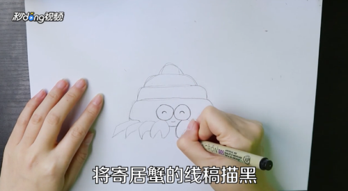 将寄居蟹的线稿描黑。