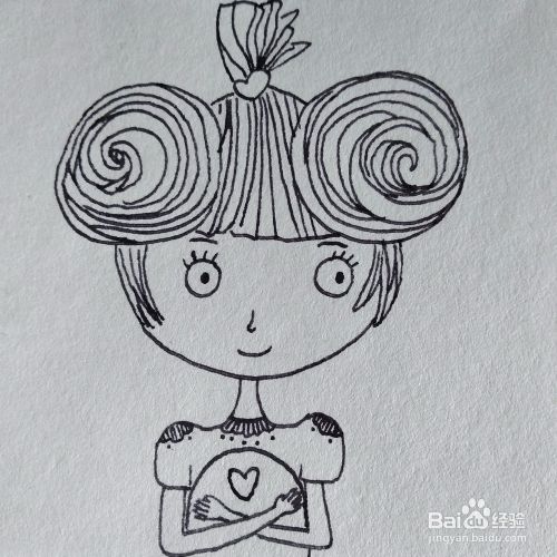 接着画出丸子头上的细节