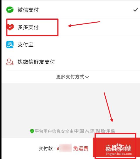 在商品支付页面中,选择多多支付,再点击立即支付按钮。