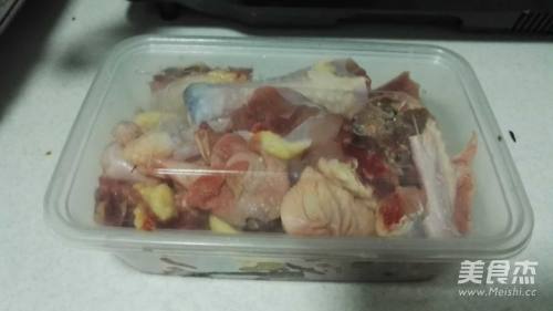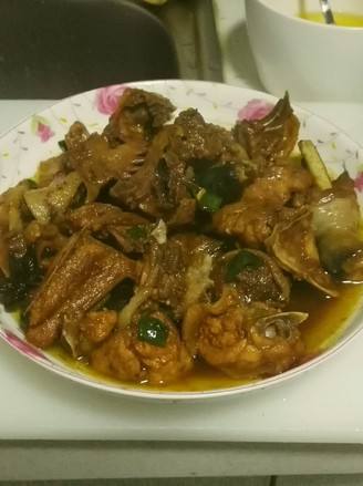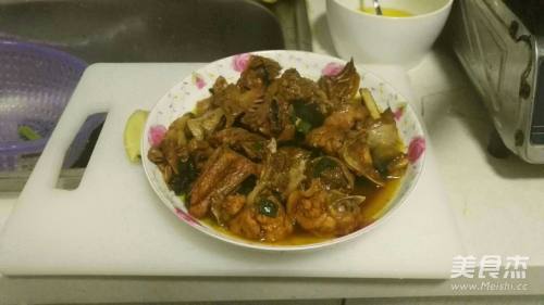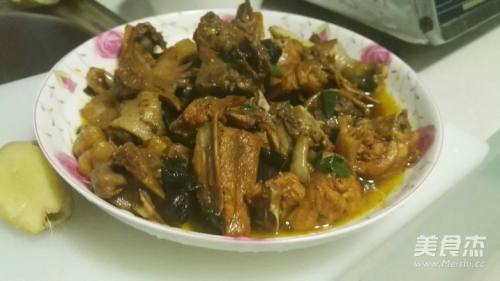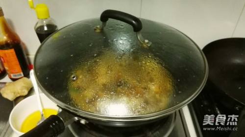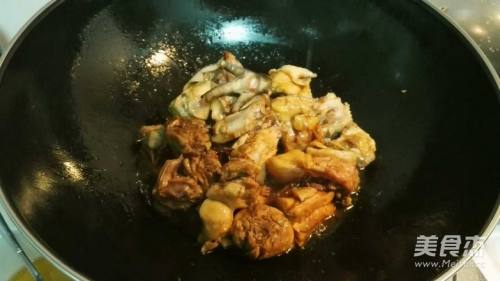 将鸡块倒入锅中翻炒至金黄色,加入料酒、老抽、生抽和豆瓣酱。翻炒均匀。