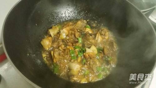 加入适量白糖、盐、葱花,大火翻炒收汁