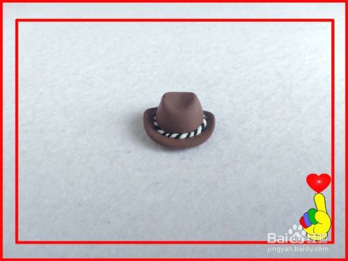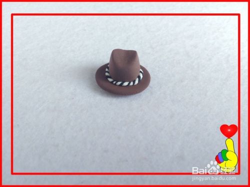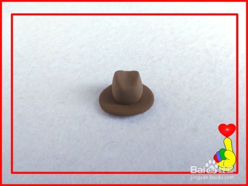 用工具,将小圆球压扁成圆片状,作为“帽沿”。