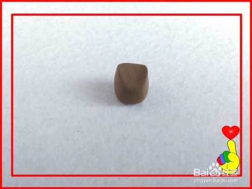 再取咖啡色彩泥适量,滚搓成小圆球,把小圆球整理成“矮圆柱”。