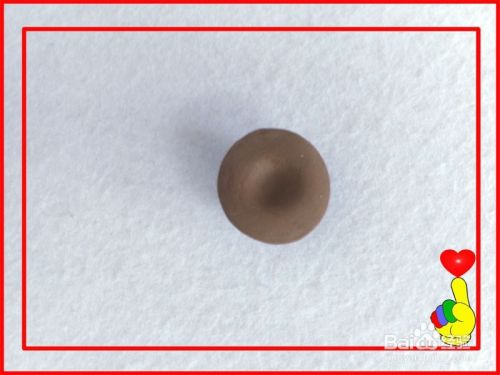 取咖啡色彩泥适量,滚搓成小圆球。