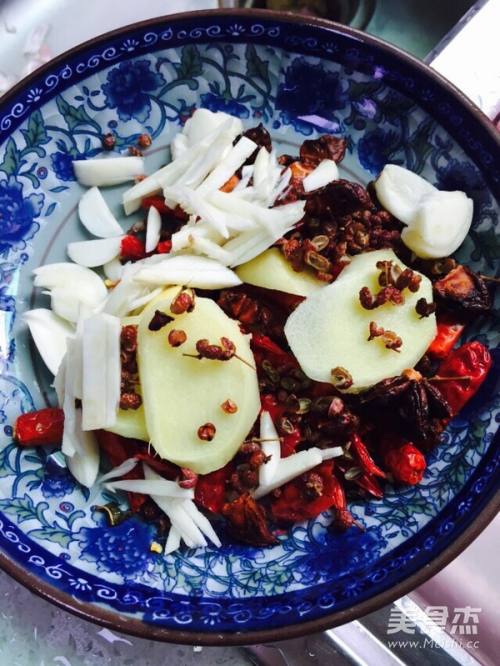 4姜蒜切片,干红辣椒切段和花椒,还有八角都洗净备用