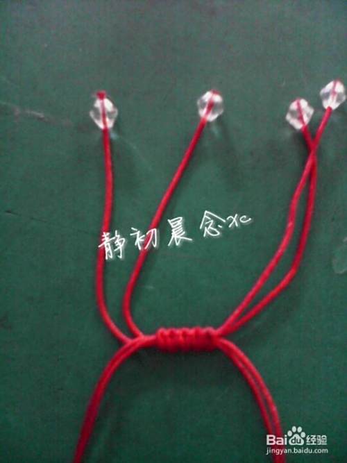在将四根线的后面穿上珠子。将线整理下,用打火机黏在珠子后面就可以了。