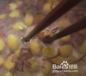 剥好的白果,放开水锅中用筷子搅动几下,小火二分钟膜衣就脱离了。