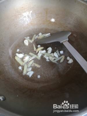 锅中倒入食用油放生姜、大蒜爆出香味。