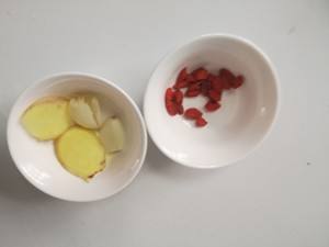 大蒜去皮拍扁,生姜切片,枸杞用开水烫下备用。