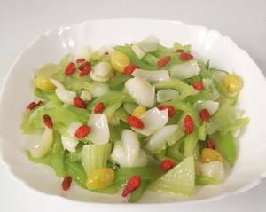 撒上枸杞点缀一下,白果西芹炒百合就做好了。