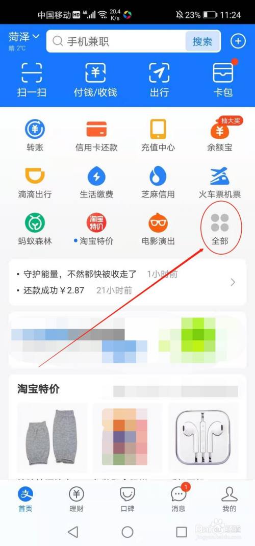 在支付宝首页点击”全部“。