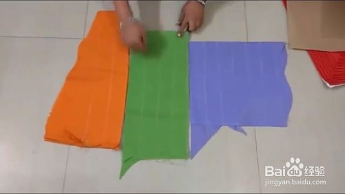 首先找出3块大小不一颜色不同的碎布。当然也可以是4色。5色根据自己家碎布情况而定
