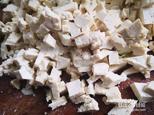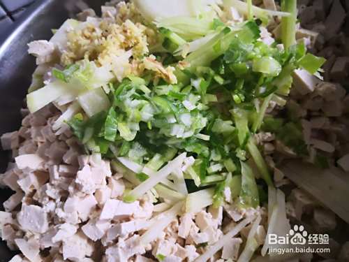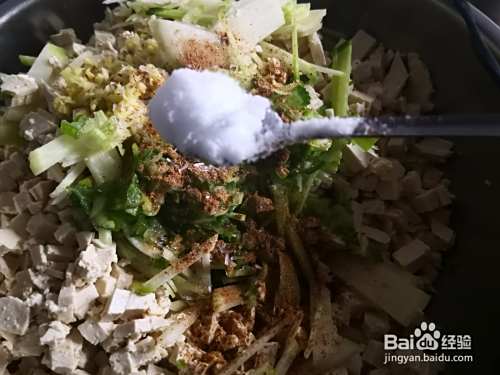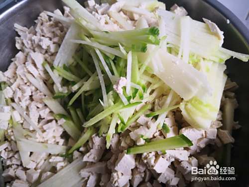 将豆腐和萝卜丝放入盆中加入葱姜末