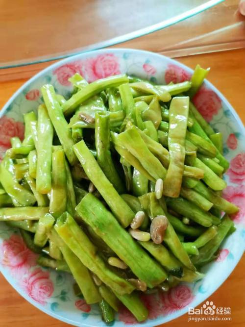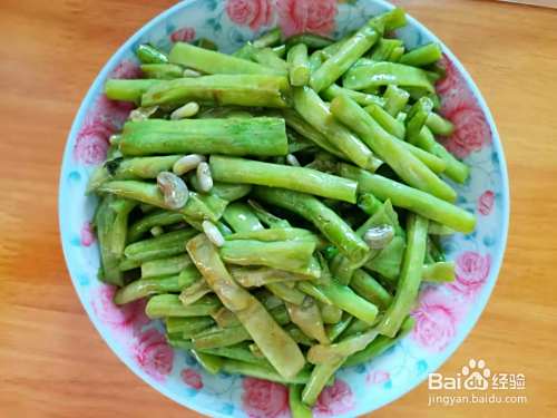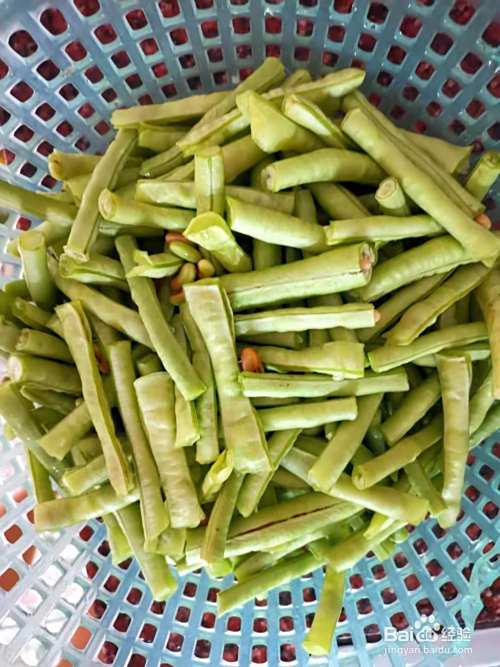 1、从菜园里摘回一把七月豆角,去掉头尾,然后清洗干净,摘成同等小段备用。