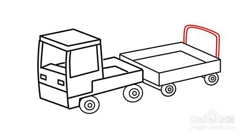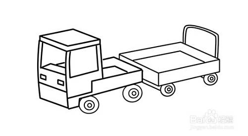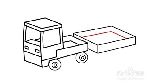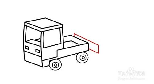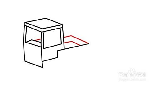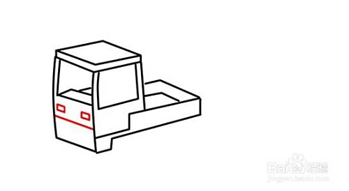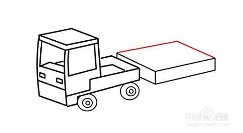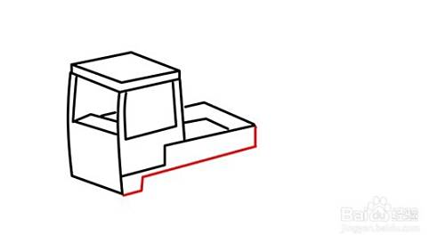 在画好的前方箱后方,画一个叠加在其后方的平行四边形,勾画出后车厢的挡板的。在其四边形竖线往右边叠加画平行四边形,勾画后车厢的另外一块车板,