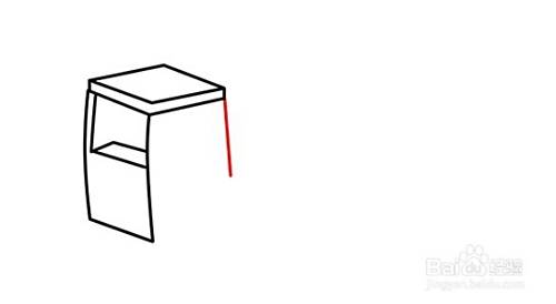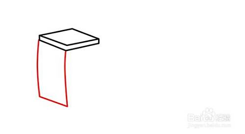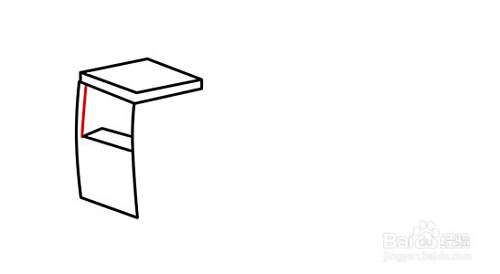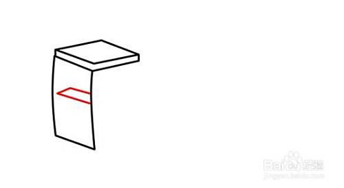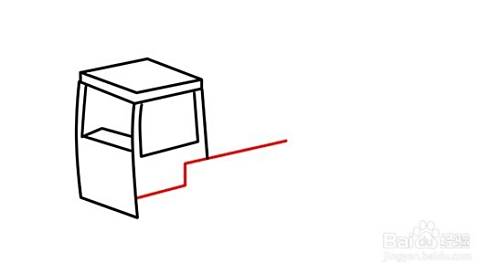 在四方体右边端点往下画斜线,与左边的弧线组合构成侧面窗。