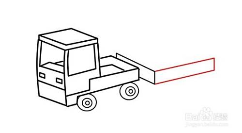 而后用‘7’线条连接两个车板,勾画出车厢,在用同样的线条勾画出车子的厚度细节部分。