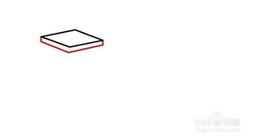 先画一个菱形,让其中一个对角正对着我们的视野,再在其下边对角的边线下画平行线,左右两端用竖线连接到四边形,就构成了有厚度的一个四方体。