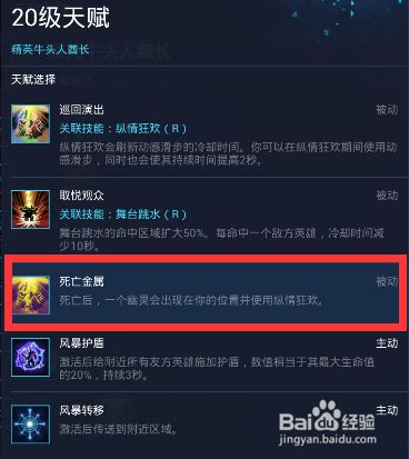 死亡后一个位置出现在你的位置并使用纵情狂欢,十一个非常强的天赋,死后还能再做一次贡献。非劣势的情况下可以点风暴转移,方便你控制到对面的关键英雄。