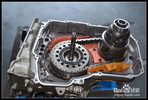 拆卸头壳螺丝,拿下变速箱头壳后是变速箱驱动链条和差速器,主要实现机械动力传输。