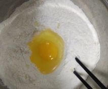 鸡蛋打入面粉中用牛奶和面全程不加一滴水活成光滑面团上面倒少许玉米油锁住水分。