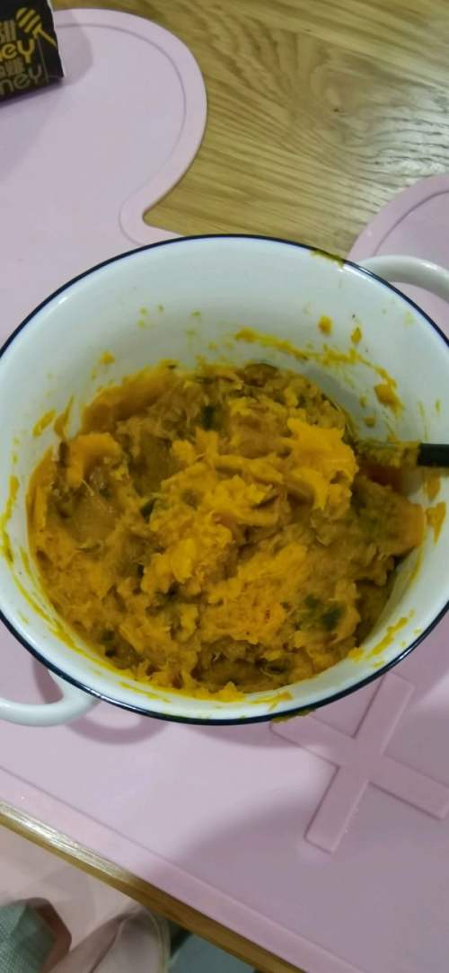 6连皮一起用勺子大概捣烂就做好了南瓜馅是不是超级简单。