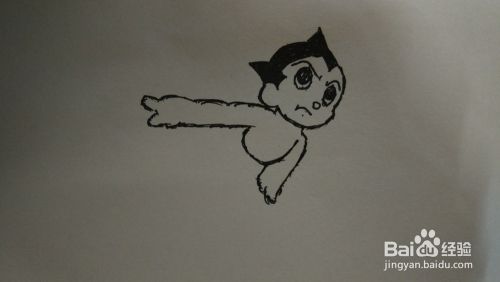 然后就是画艾阿童木的身体,也顺便把手的部分也画上去就行。