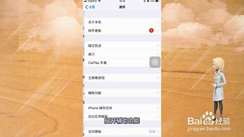打开通用功能后,找到里面的辅助功能点击并且打开。