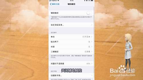 打开辅助功能以后,找到辅助触控功能,关闭辅助触控。