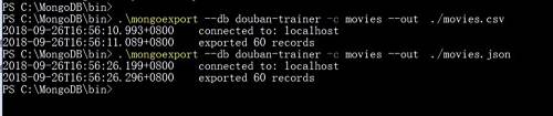 第二步,执行 .\mongoexport --db dbname -c dbcollection--out ./data.csv 命令,dbname为数据库名称,dbcollection为数据库集合,data.csv为导出的数据名。其中,csv后缀也可以改成json。