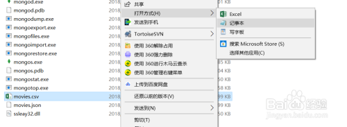 第五步,右键选择 data.csv 文件,选择打开方式为记事本。理论上,其他可以更改文件格式的编辑器也可以。
