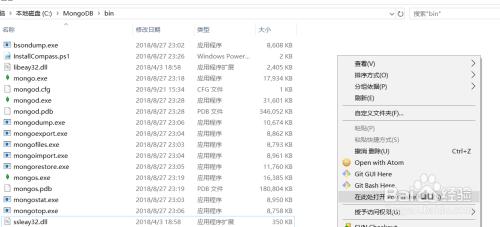 第一步,找到MongoDB的安装路径,并进入 bin 目录