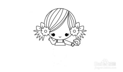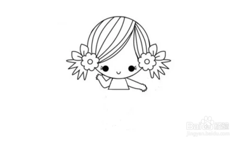然后顺着花朵画出马尾,一条条均匀的弧线画在头顶就像真的头发一样。
