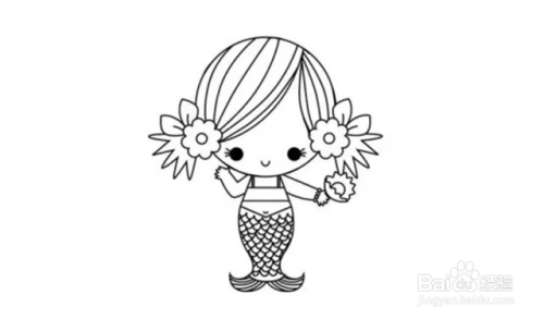 接着画出美人鱼手里的小花,锯齿状的小花真的不常见。