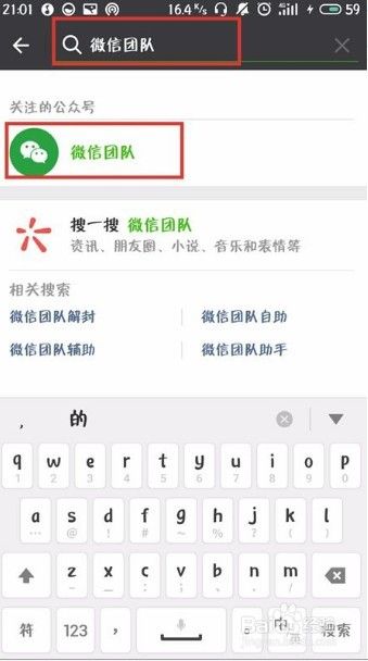 输入“微信团队”