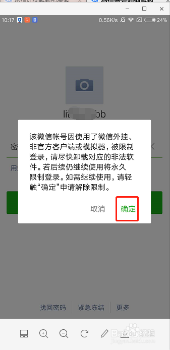 首先,使用分身软件被封号时都会出现类似于的提示 当出现这个页面时 点击“取消”