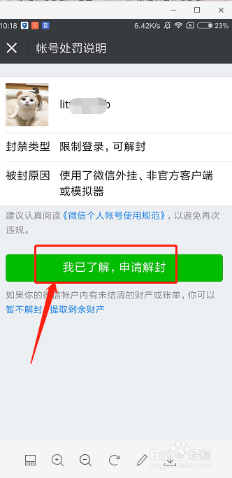 我已了解,申请解封