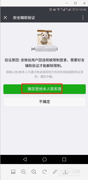 确定他是本人联系我