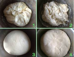 开始会比较粘,别担心,继续揉,就会成光滑面团。然后咱们歇歇,让面团再次发酵成1.5倍大小。