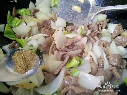 趁锅里的余热放入适量的孜然粉翻炒均匀即可装盘