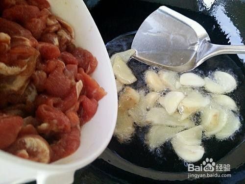 锅里放入适量的油烧热后放入生姜大蒜煸出香味