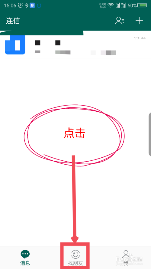 点击打开连信软件,然后在打开的主界面,点击底部中间位置的找朋友。如图所示