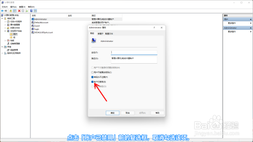 点击「账户已禁用」前的复选框,取消勾选该项。