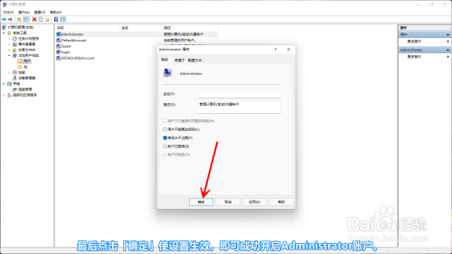 最后点击「确定」使设置生效,即可成功开启Administrator账户。
