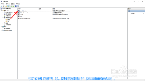 在子分类「用户」中,找到并双击用户「Administrator」。