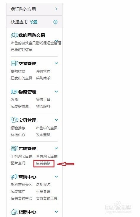 鼠标下拉,在左侧中间的位置找到“店铺装修”,点击进入装修页面。