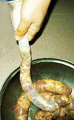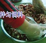 带上一次性手套,直接用手往下推就可以。灌一会,把肉馅用手往下捏一捏,使肉变的更紧实,但不要太用力,不要把肠衣弄破了。