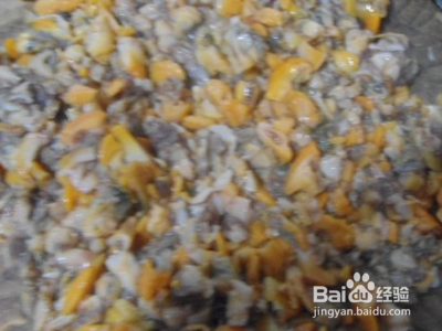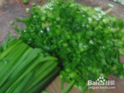 在把嘛蛤剥皮也用水清洗干净,再剁碎,最后把准备的韭菜同样清洗干净再切碎。